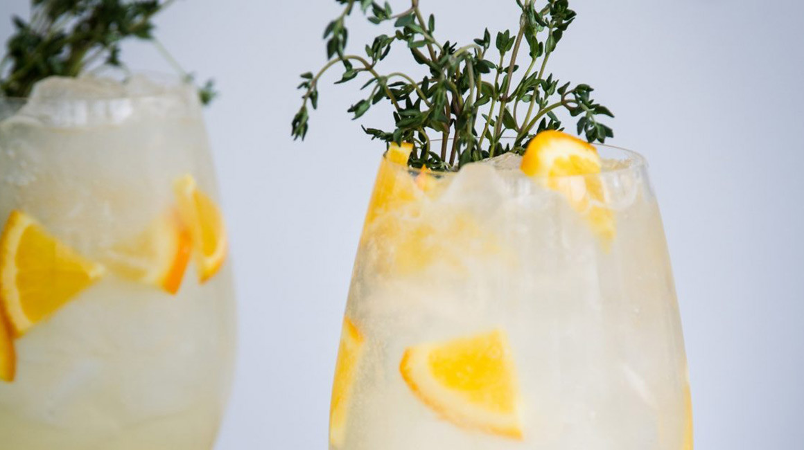 1 slice of orange and 1 sprig of fresh thyme (to garnish)